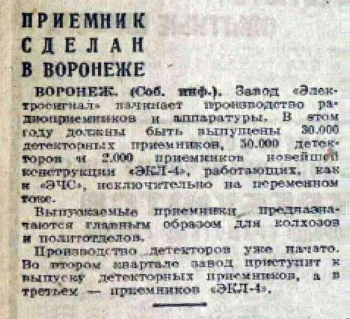 детекторный "Воронеж" (наименование условное) с 1934 года выпускал Воронежский