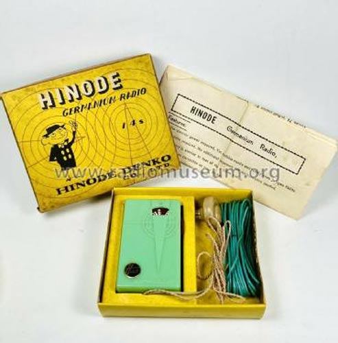 Детекторный радиоприёмник "Hinode" выпускался возможно с 1960 года компанией Hinode Denko Co. Осака. Япония. Фото с сайта https://www.abetterpage.com/ и ешё ссылка на фото.