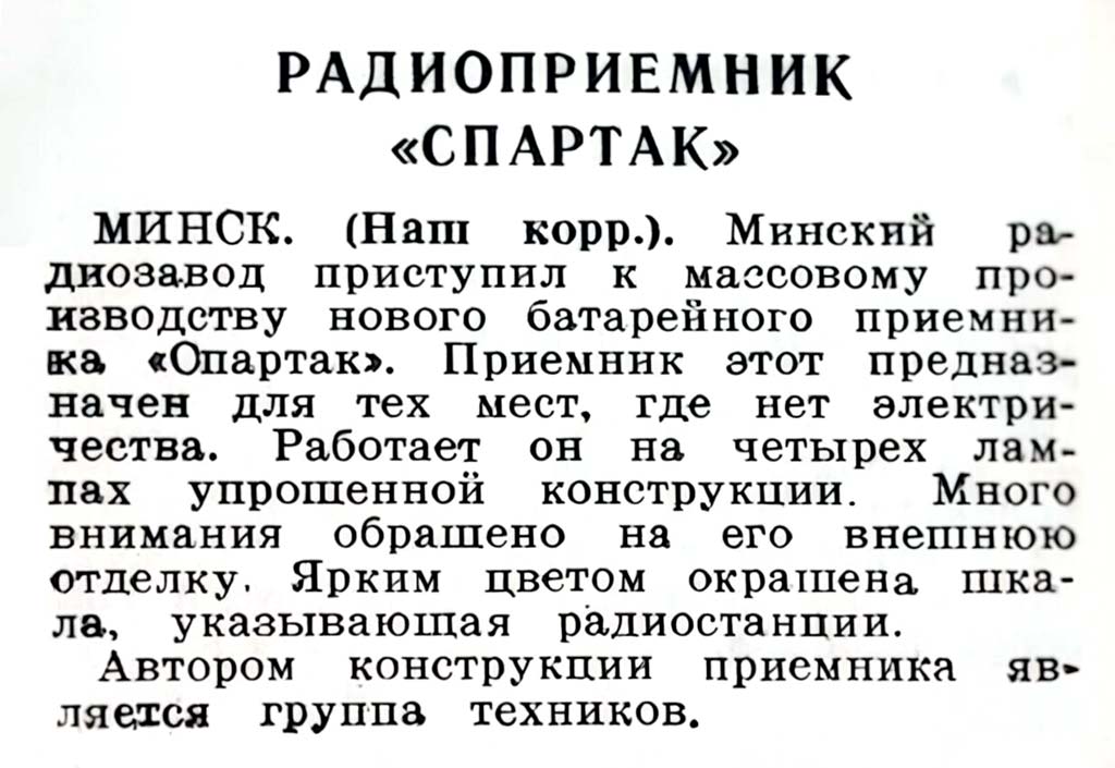 батарейный "Спартак" с 1941 года выпускал Минский радиозавод имени Молотова.