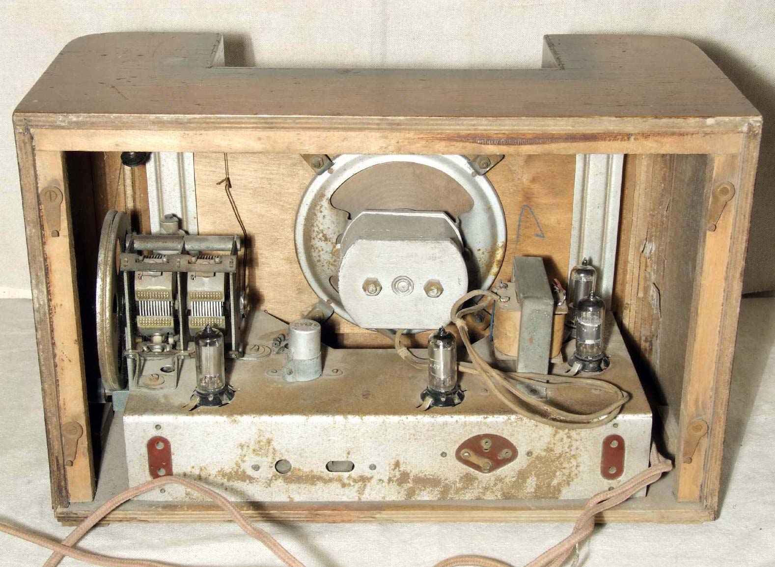 собран по супергетеродинной схеме на 4-х пальчиковых радиолампах и работает