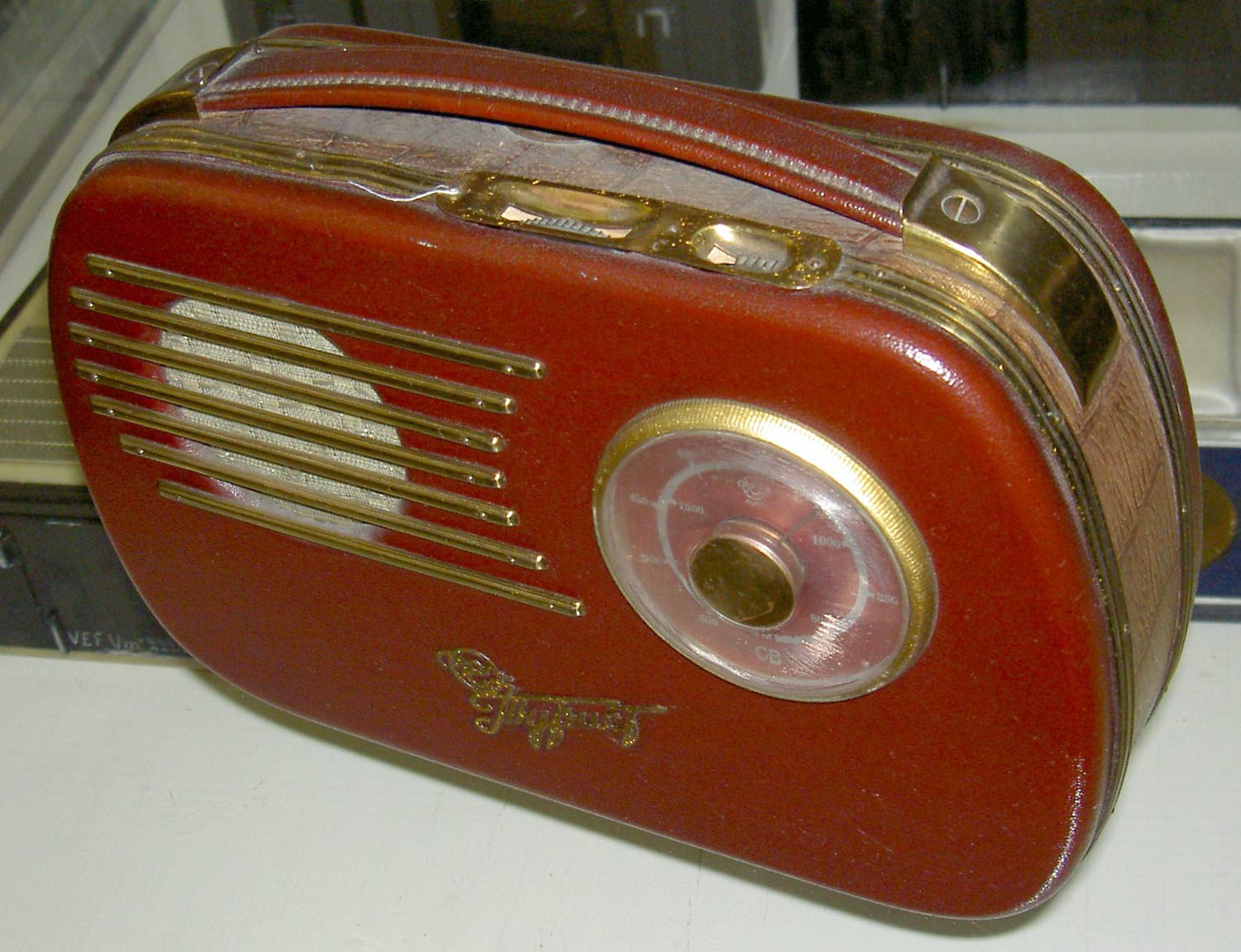 завод "ВЭФ". Сразу радиоприёмник был в корпусе из дерева обтянутом специальной
