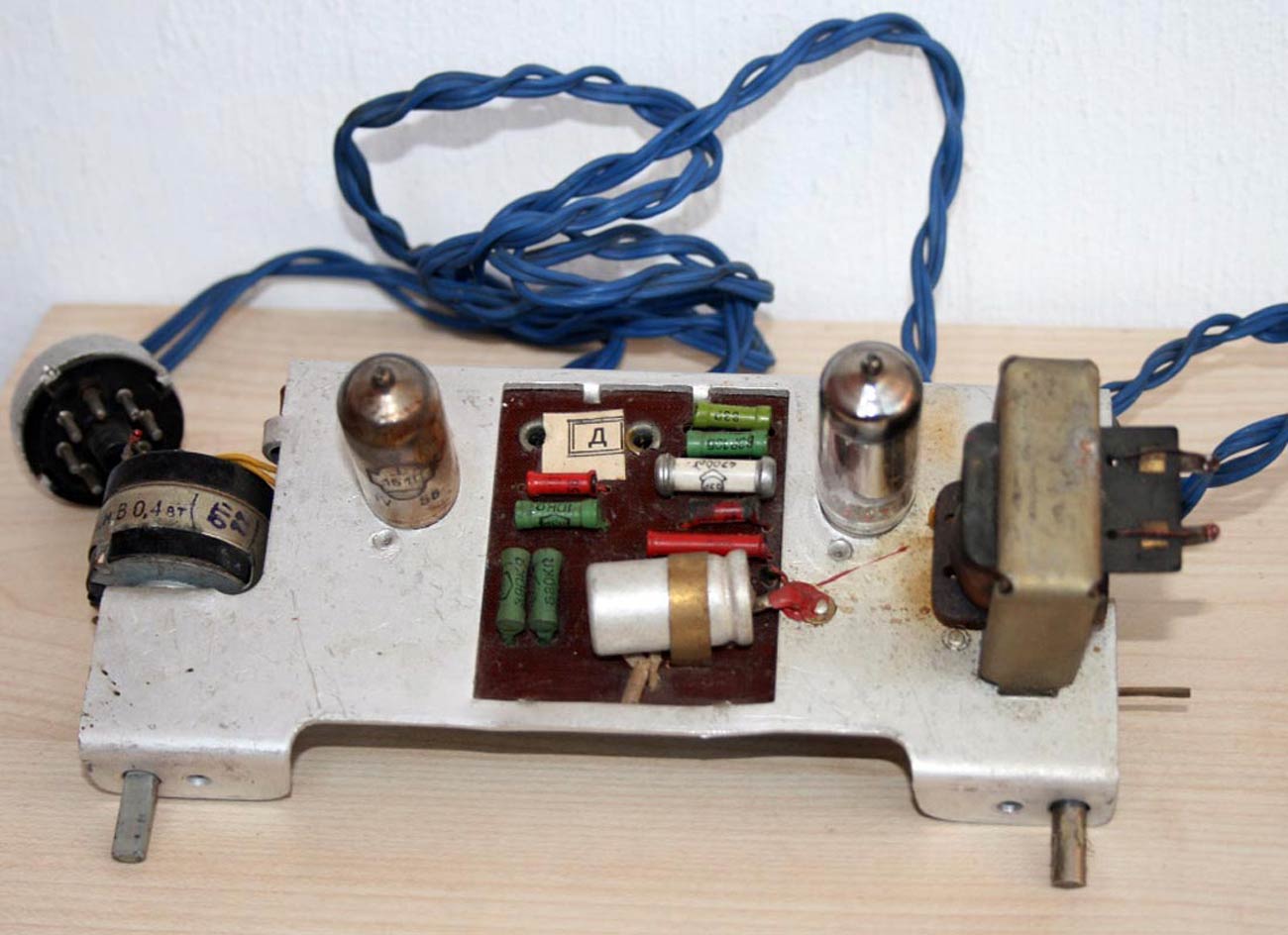 на двух радиолампах по схеме прямого усиления, с обратной связью по ВЧ.
