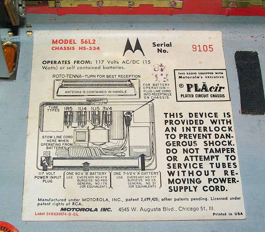 "Motorola 56L2" выпускался возможно с 1956 года компанией "Motorola", США.