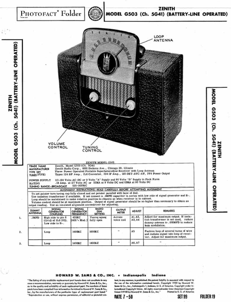 "Zenith G503" выпускался с 1949 года корпорацией "Zenith Radio", США. Супергетеродин