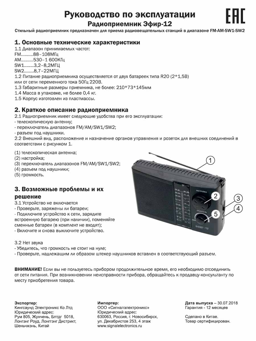 Радиоприёмник "Эфир-12" импортировался ООО "Сигналэлектроникс" г. Новосибирск от экспортёра Кигсаунд "Электроникс" Ко Лтд, Китай. Выпуск всех моделей радиоприёмников серии "Эфир" начался с 2015 г.