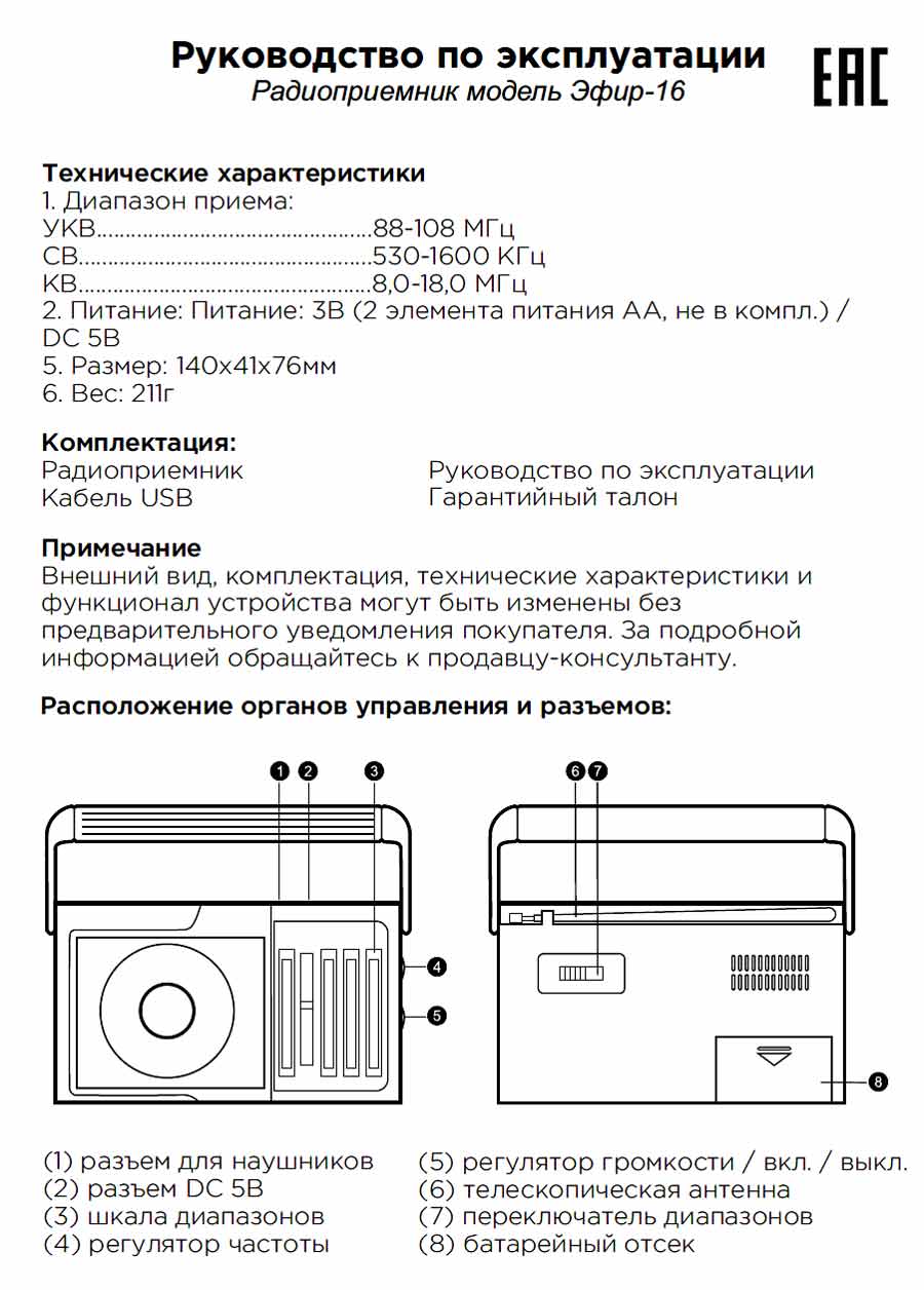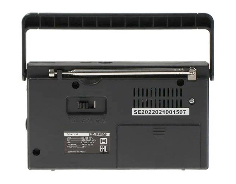Радиоприёмник "Эфир-16" импортировался ООО "Сигналэлектроникс" г. Новосибирск от экспортёра Кигсаунд "Электроникс" Ко Лтд, Китай. Выпуск всех моделей радиоприёмников серии "Эфир" начался с 2015 г.