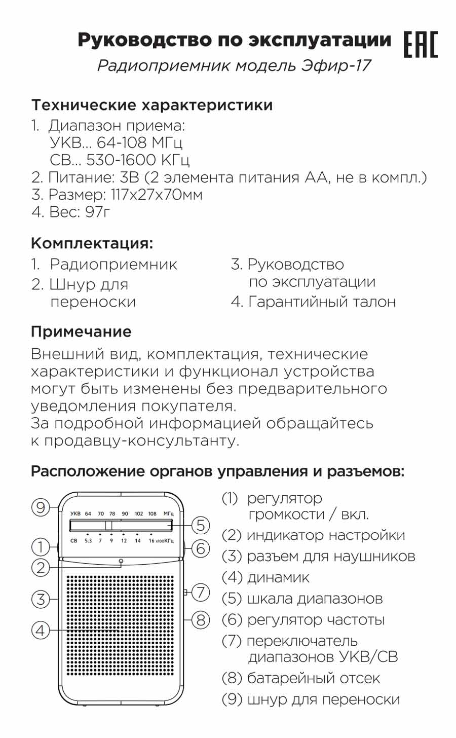 Радиоприёмник "Эфир-17" импортировался ООО "Сигналэлектроникс" г. Новосибирск от экспортёра Кигсаунд "Электроникс" Ко Лтд, Китай. Выпуск всех моделей радиоприёмников серии "Эфир" начался с 2015 г.
