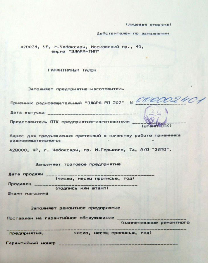 радиовещательный "Элара РП-202" выпускался с 1994 года Чебоксарской фирмой