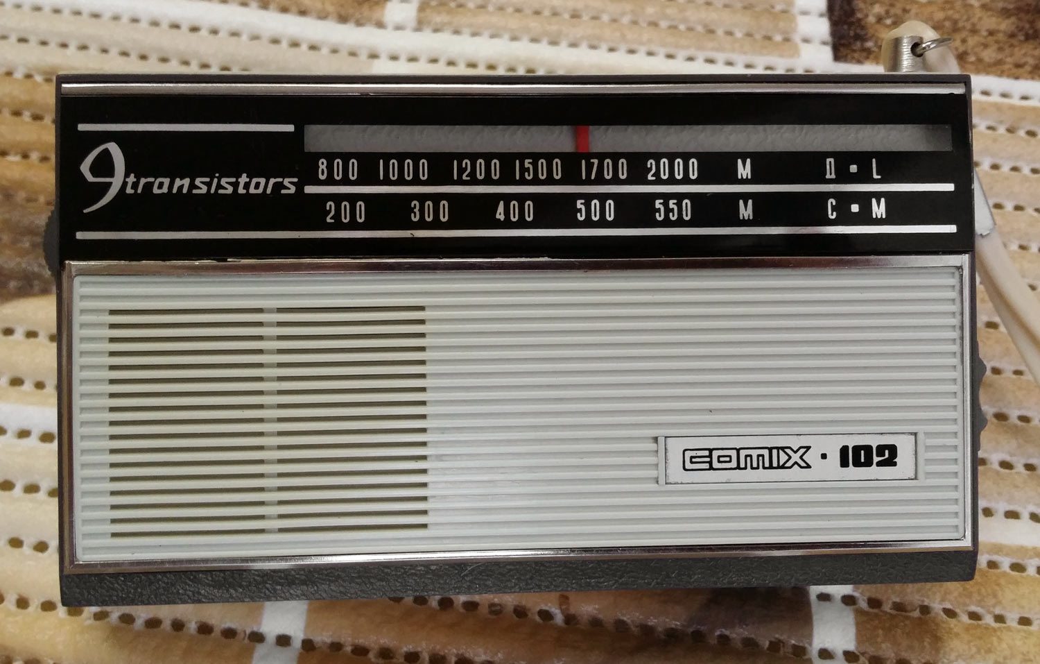 148х80х25 мм. Масса 230 гр. Экспортный приёмник назывался "COMIX-102".