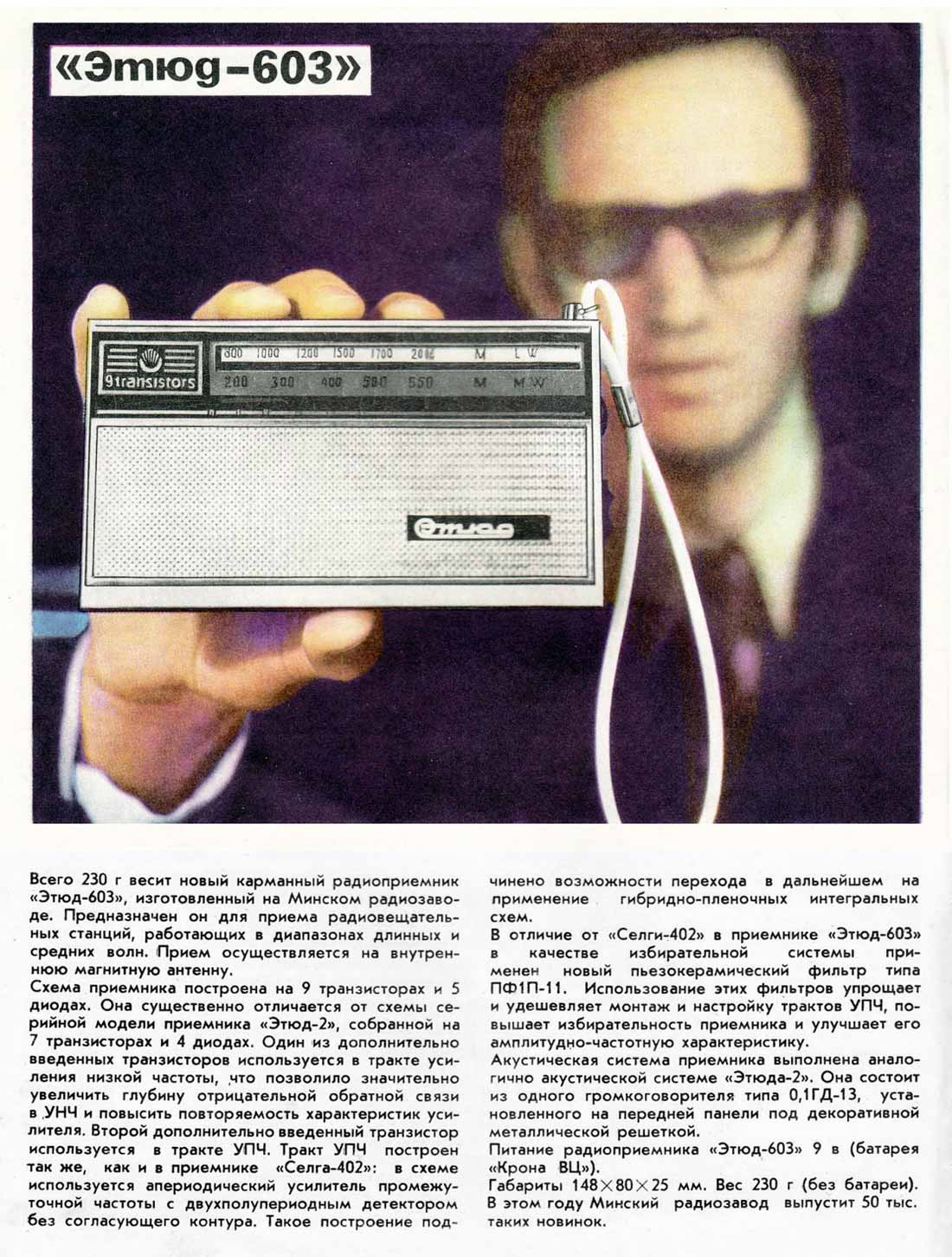 транзисторный радиоприёмник "Этюд-603" с октября 1971 года выпускал Минский