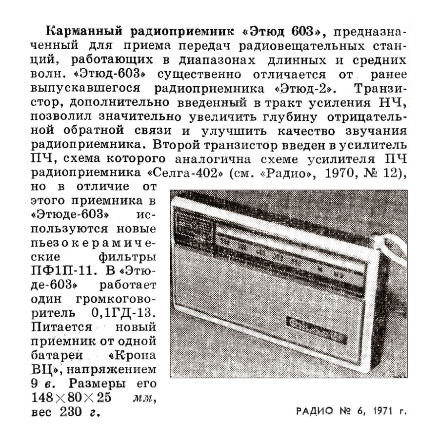 позже ''Этюд-603''. Цифры 603, означают что приёмник вне класса. Радиоприёмник
