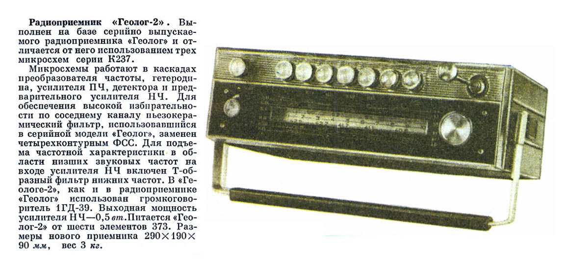 нижних частот. Как и в приёмнике "Геолог", здесь установлен громкоговоритель
