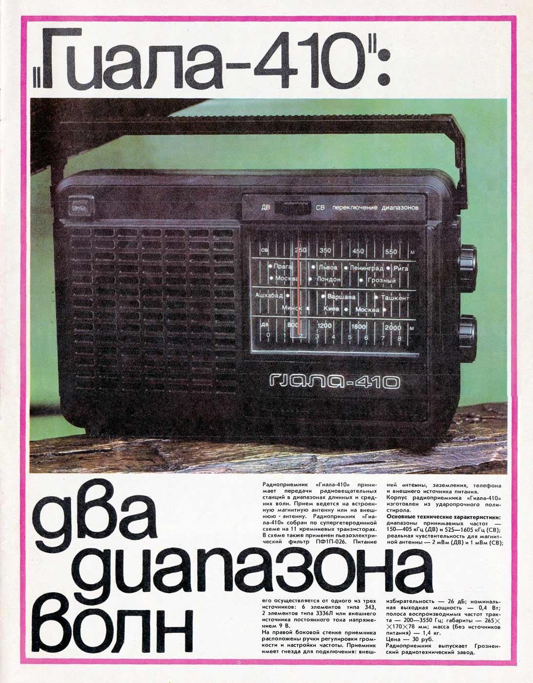 радиоприёмник "Гиала-410" предположительно с 1980 года выпускал "Грозненский