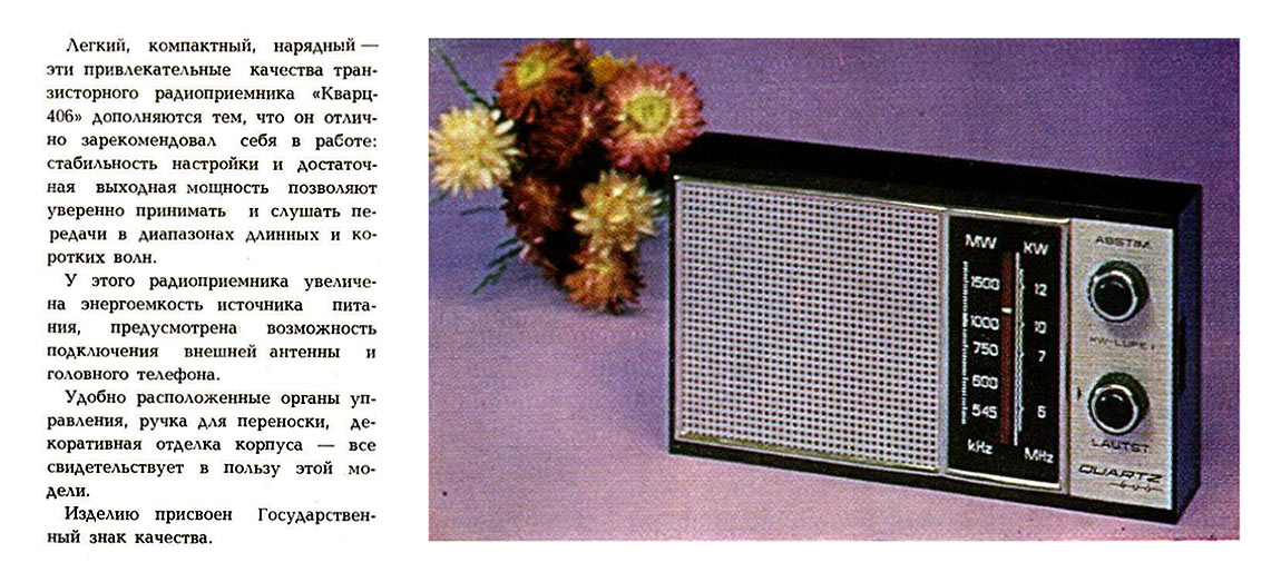 Радиоприёмник ''Кварц-406'' или его экспортный вариант ''Quartz-406'' создан