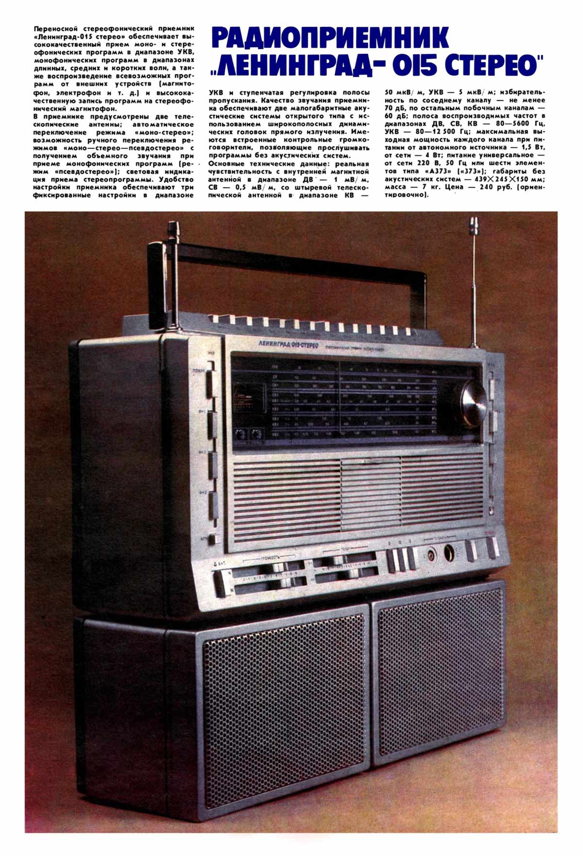с 1984 года выпускал Ленинградский завод "Радиоприбор". Переносный стереофонический