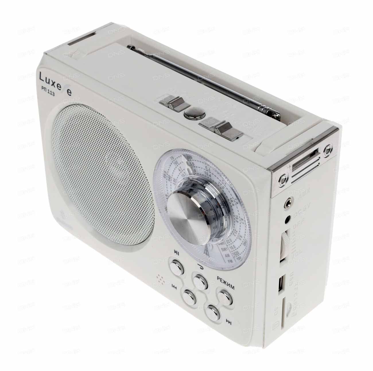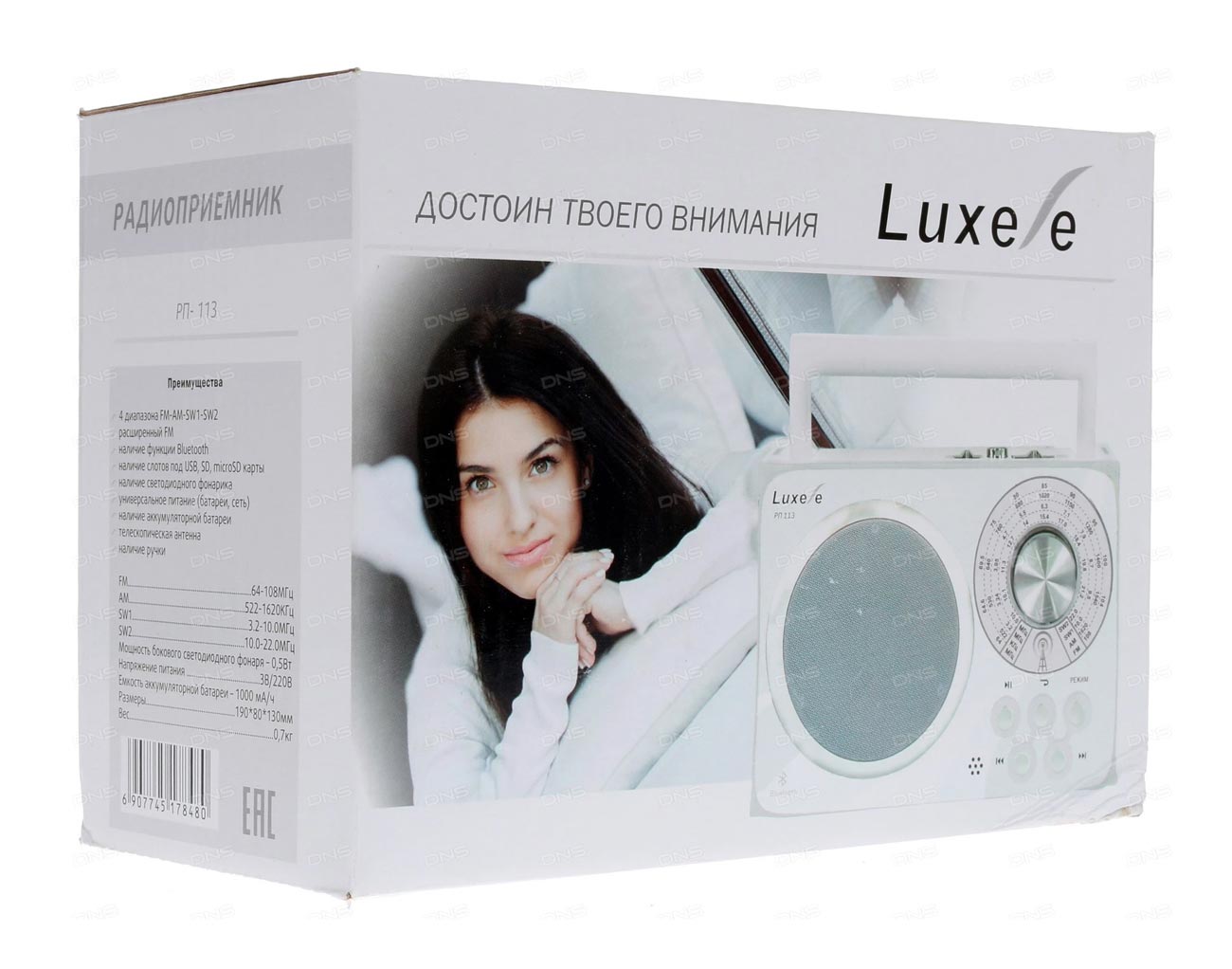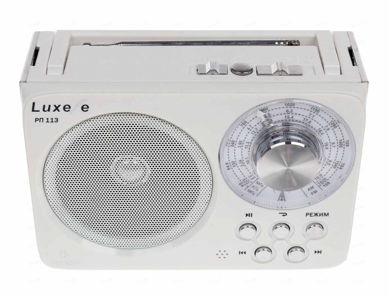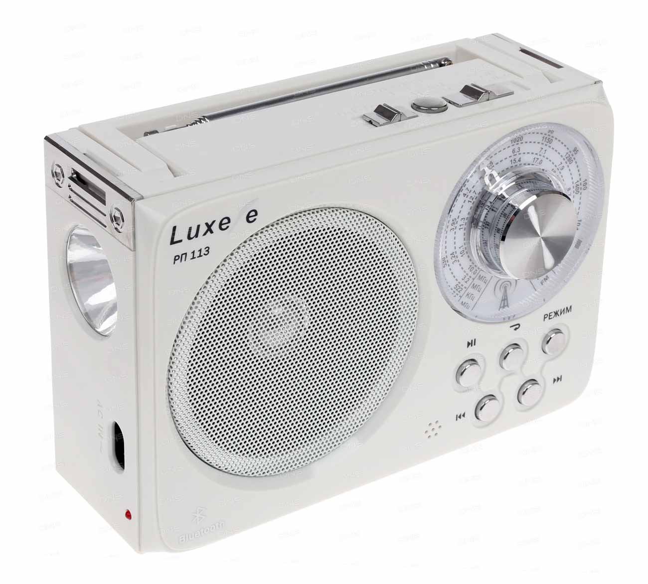 Радиоприёмник "Luxele РП-113" выпускался с 2018 года. Импортёр: ООО "Олимпия", Новосибирск. Экспортёр: Китай. Аналоговый + MP3 + фонарь. УКВ 64...108 МГц, СВ, 2 КВ. Питание 2 батареи R20.