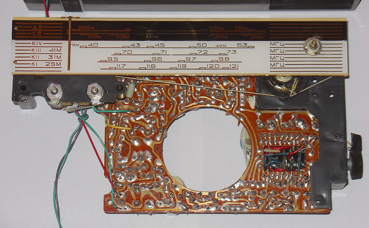 выполнена на 10-ти транзисторах. Приёмник выпускали и на экспорт, отличие