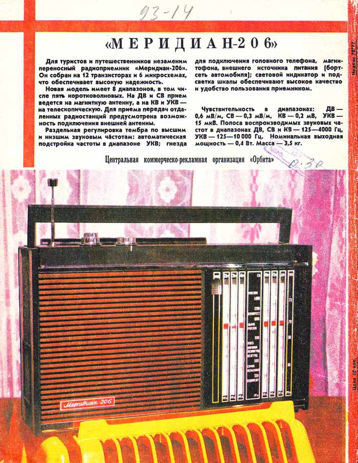 радиоприёмник "Меридиан-206" с 1976 года выпускал Киевский завод "Радиоприбор".