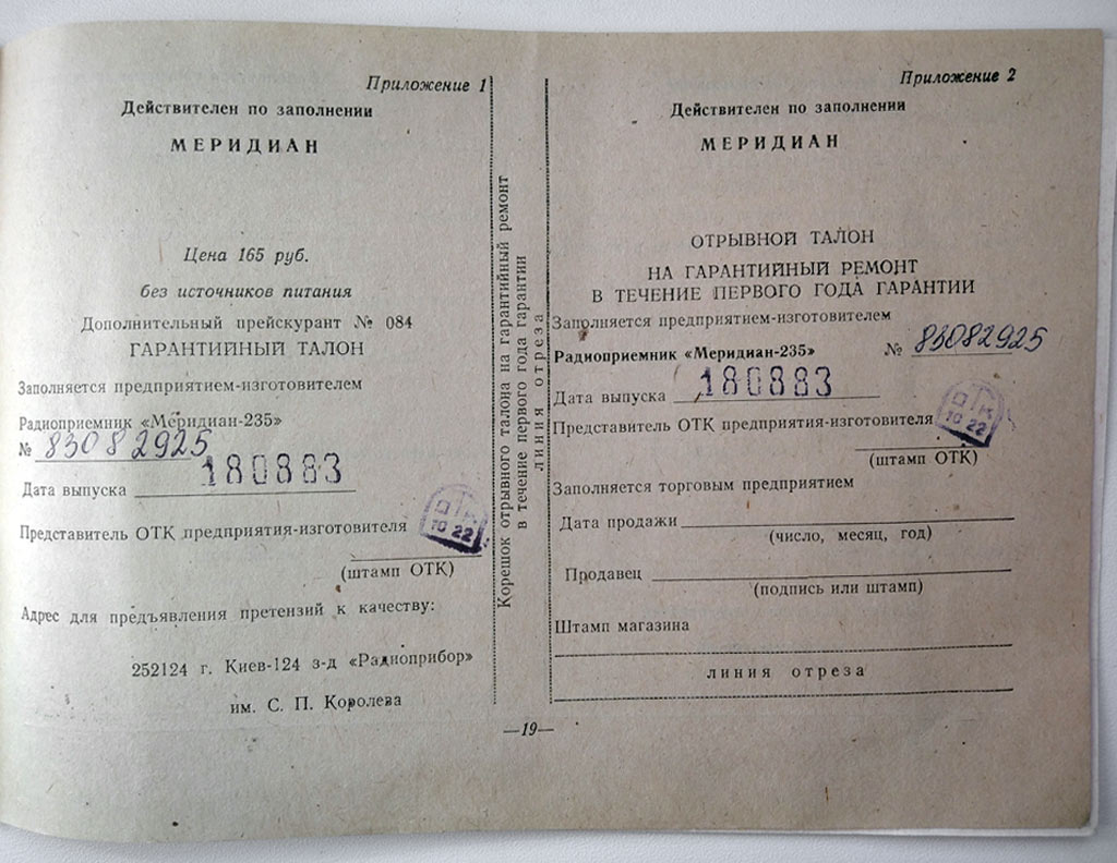 радиоприёмник "Меридиан-235" с середины 1983 года выпускал Киевский завод