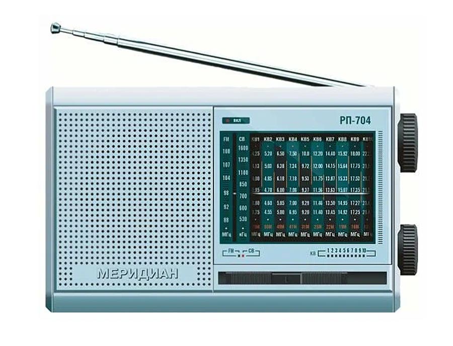 Радиоприёмник "Меридиан РП-704" выпускался в Китае и продавался в РФ с 2007 года Московским ЗАО "МИГ". Меридиан "РП-702" - переносной радиоприёмник, приём FM, УКВ, СВ, КВ, элементы питания 2xAA, масса 0.2 кг