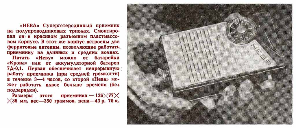 года Ленинградские заводы "Радиоприбор" и ''ТЭМП''. ''Нева'' - супергетеродин,