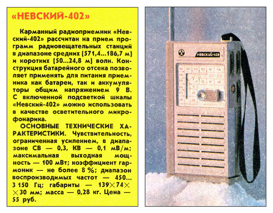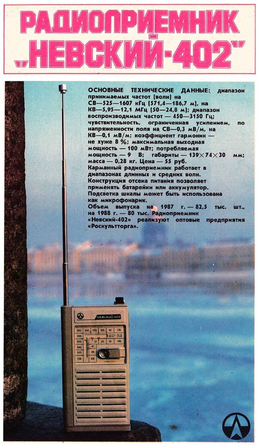 малогабаритный радиоприёмник "Невский-402" с 1987 года выпускал Ленинградский