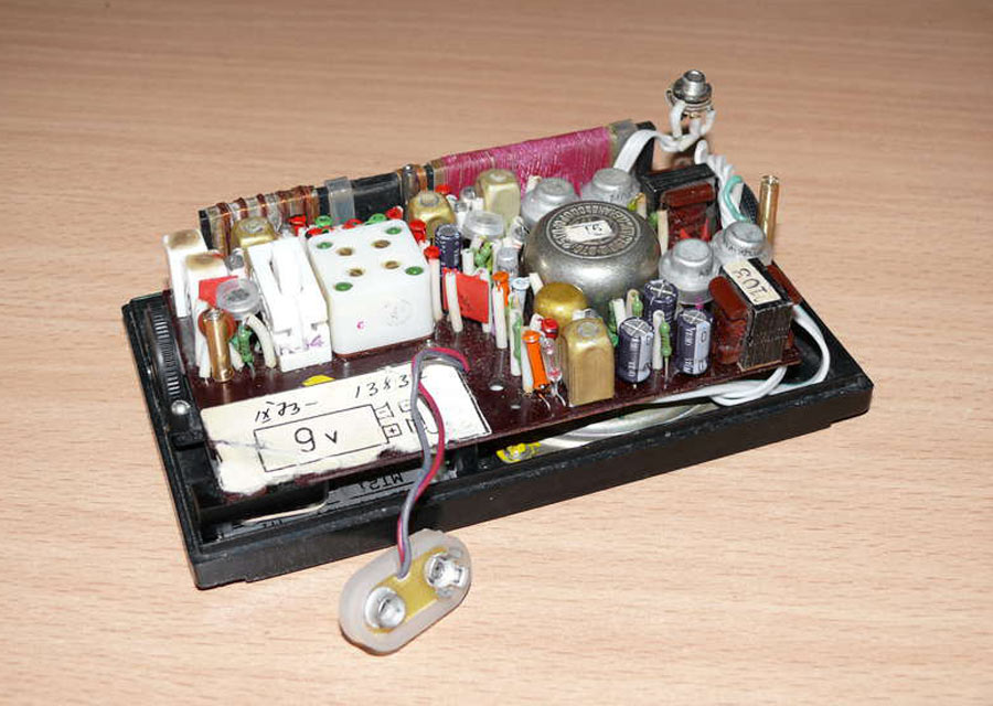 приёма в диапазонах ДВ, СВ на магнитную антенну. Питание от батареи ''Крона''.