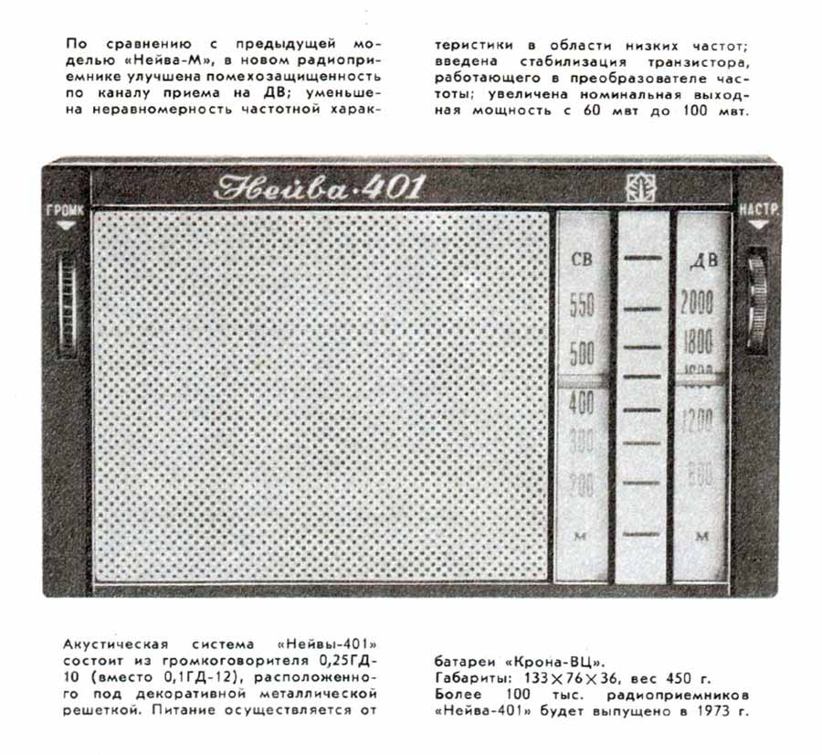 завод. ''Нейва-401'' является модернизацией приёмника ''Сигнал-601'' и