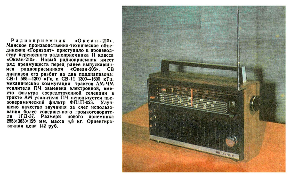 радиоприёмник "Океан-210" с 1974 года опытно выпускало Минское НПТО "Горизонт".