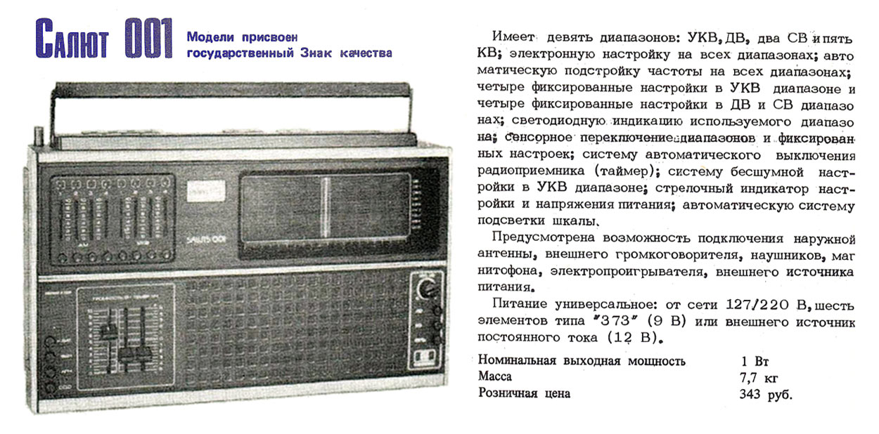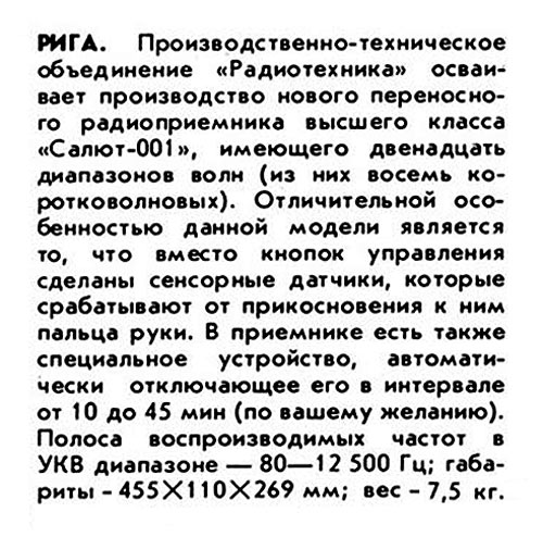 радиоприёмник "Салют-001" с 1980 года выпускал Рижский радиозавод имени