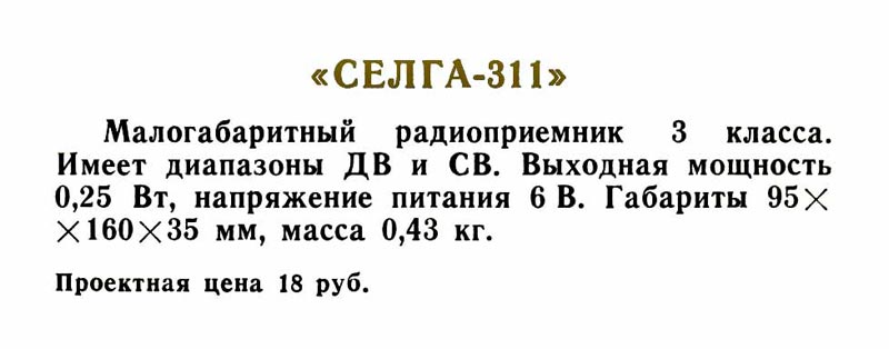 Малогабаритный радиоприёмник "Селга-311" в 1983 году разработан в КБ Рижского ПО "Радиотехника". Серийно не выпускался. Любопытно, как менялась цена от проектной до розничной.