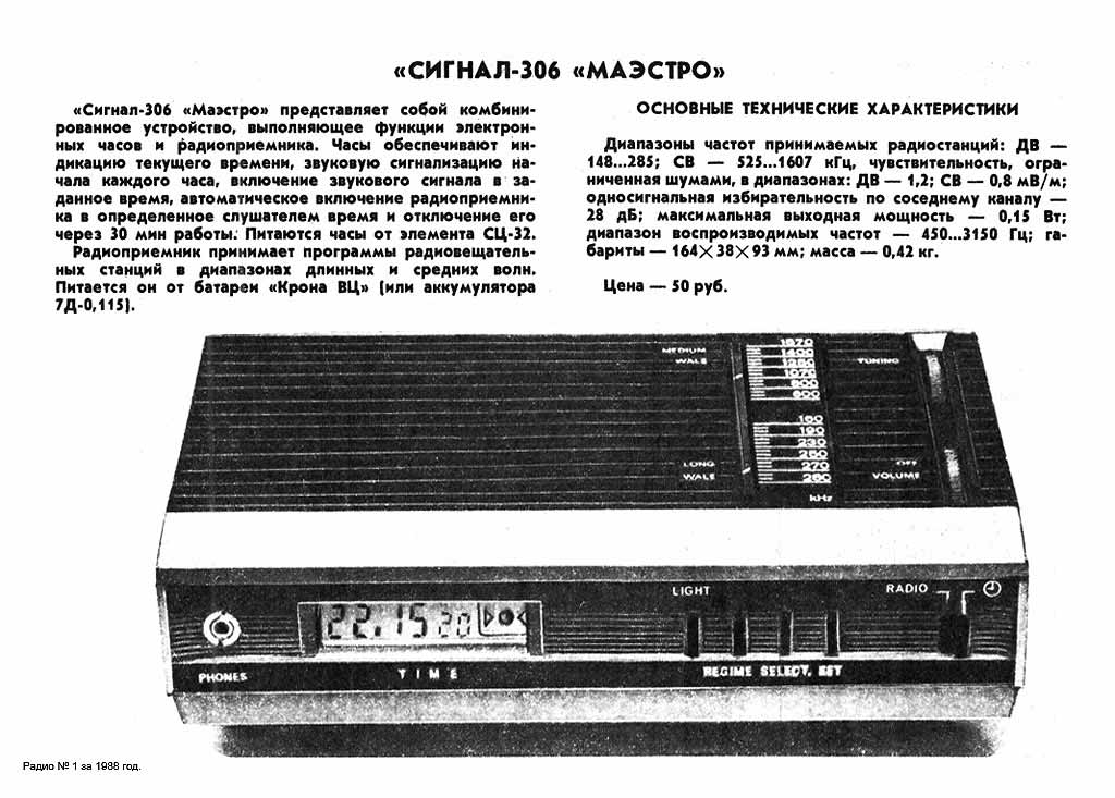 часами и приёмником. Часы дают индикацию времени, сигнализацию начала каждого