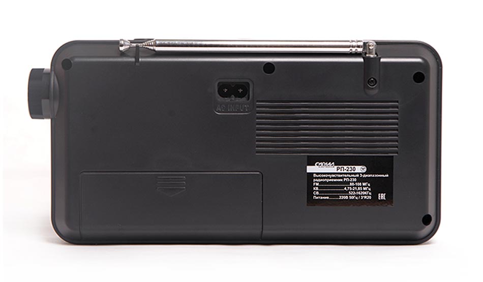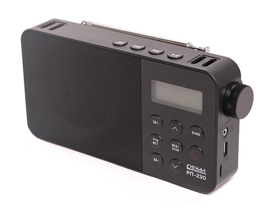 Радиоприёмник "Сигнал РП-230" выпускался возможно с 2020 года. Изготовитель - Китай. Импортёр - ООО "Сигналэлектроникс". Диапазоны: УКВ, СВ, КВ. Электронные часы. Поддержка файлов типа МП-3.