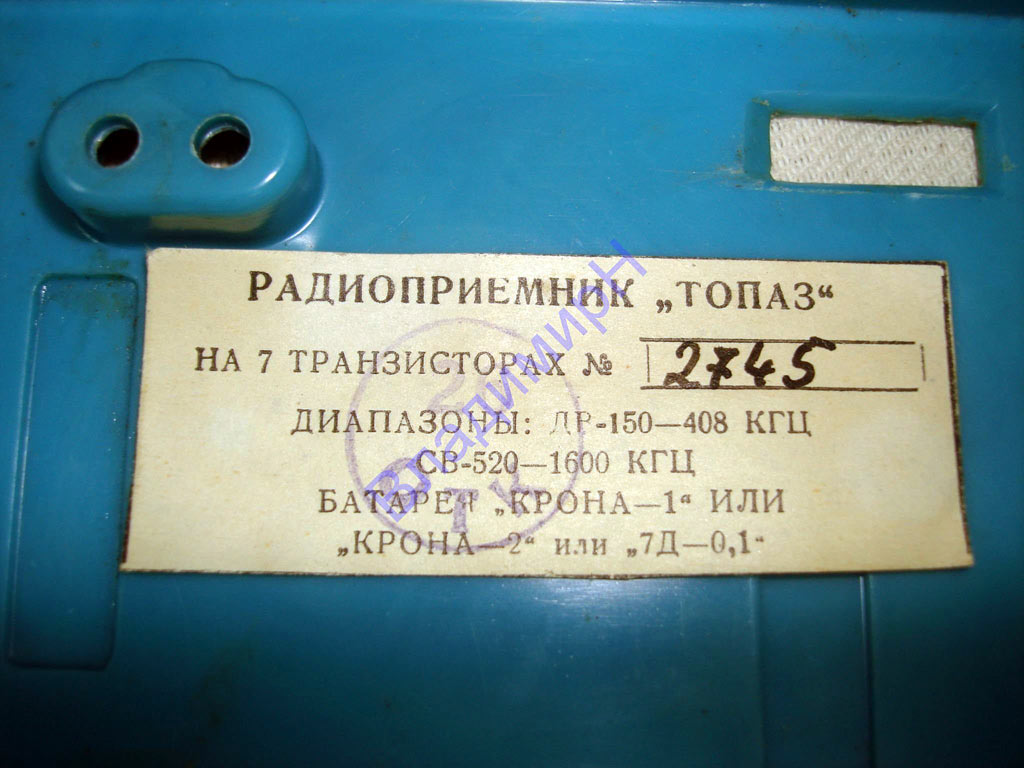 радиоприёмник "Топаз" с осени 1962 года выпускал Владивостокский завод