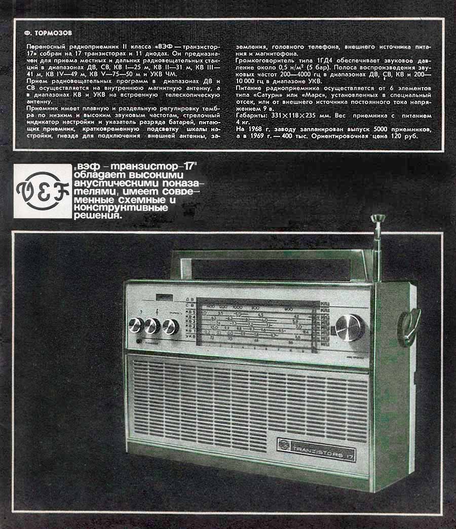 Транзистор-17''. Оба радиоприёмника начали выпускать с октября 1967 года,