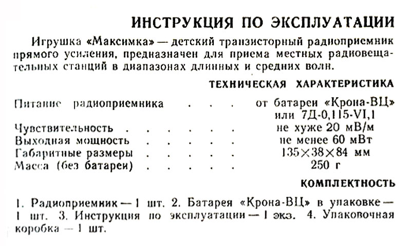 и Оборудования. Радиоприёмник прямого усиления ''Максимка'' предназначен