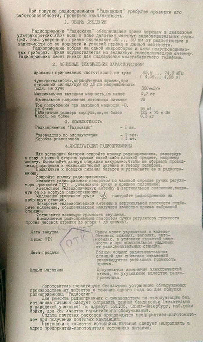 Приёмник работает в диапазоне УКВ-ЧМ в радиусе до 50 километров от радиостанции.