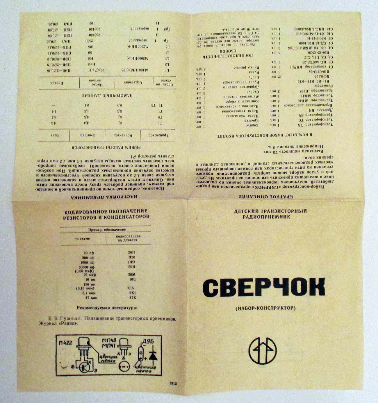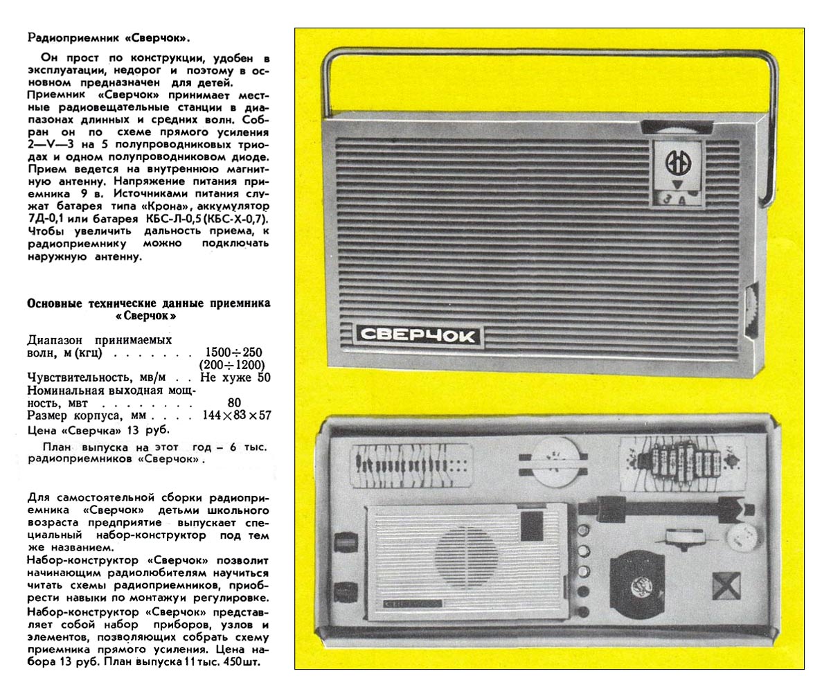 радиоприёмник "Сверчок" и набор-конструктор "Сверчок" с 1969 года выпускал