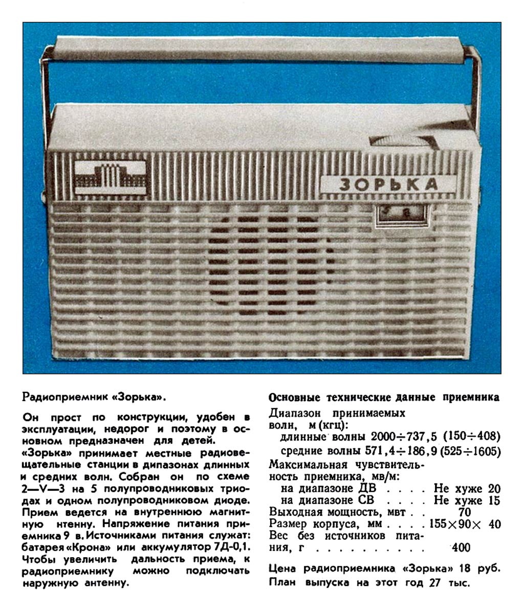 радиоприёмник-игрушка "Зорька" с 1970 года выпускал Куйбышевский приборостроительный