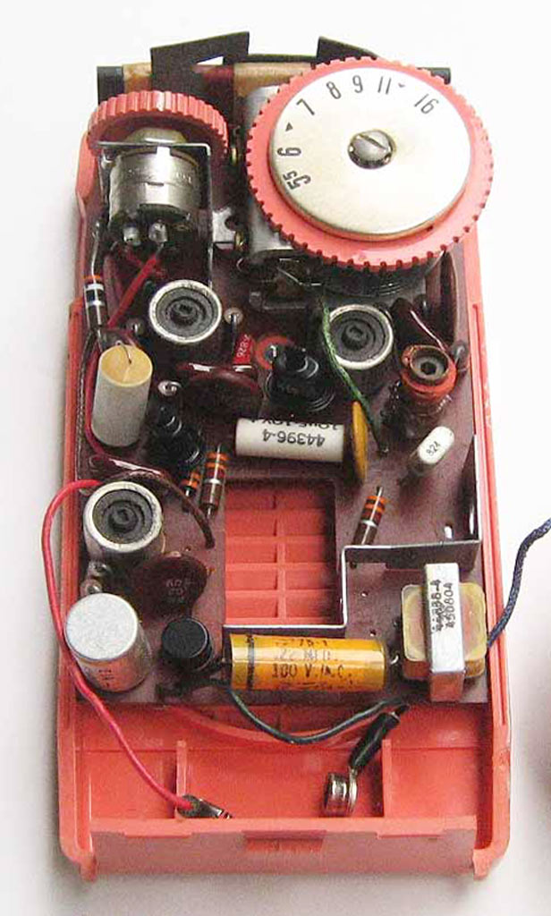 кГц. ПЧ - 455 кГц. Диаметр громкоговорителя 7 см. Питание от круглой батареи