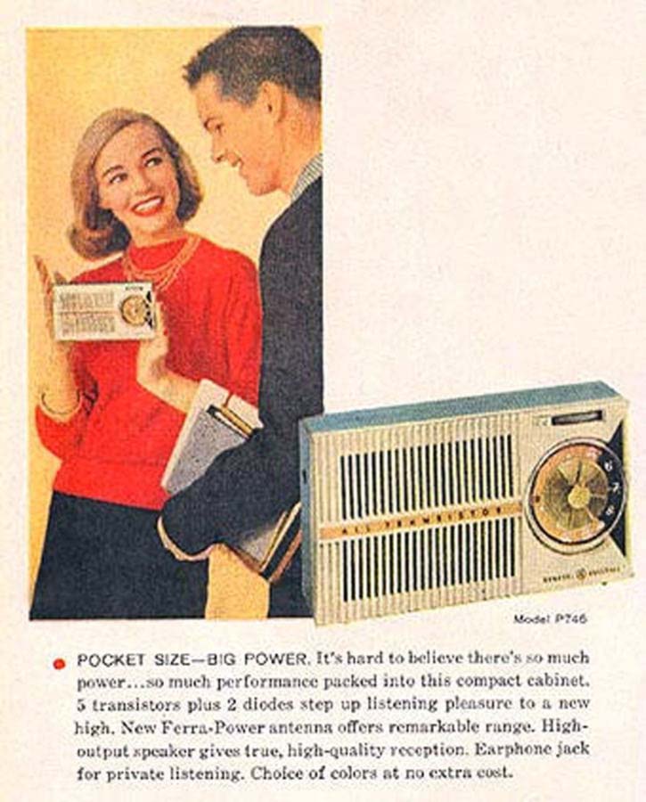 "General Electric", США. Приёмники одинаковы, разница только в цвете футляров.