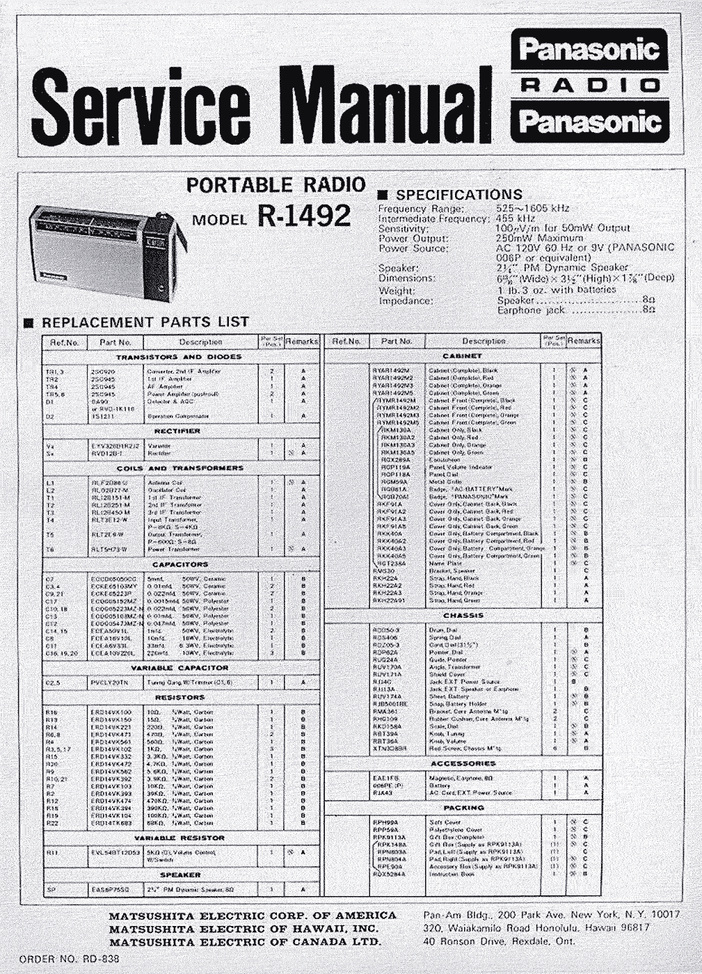 R-1492" выпускался с осени 1973 года Японской компанией "Panasonic Matsushita".