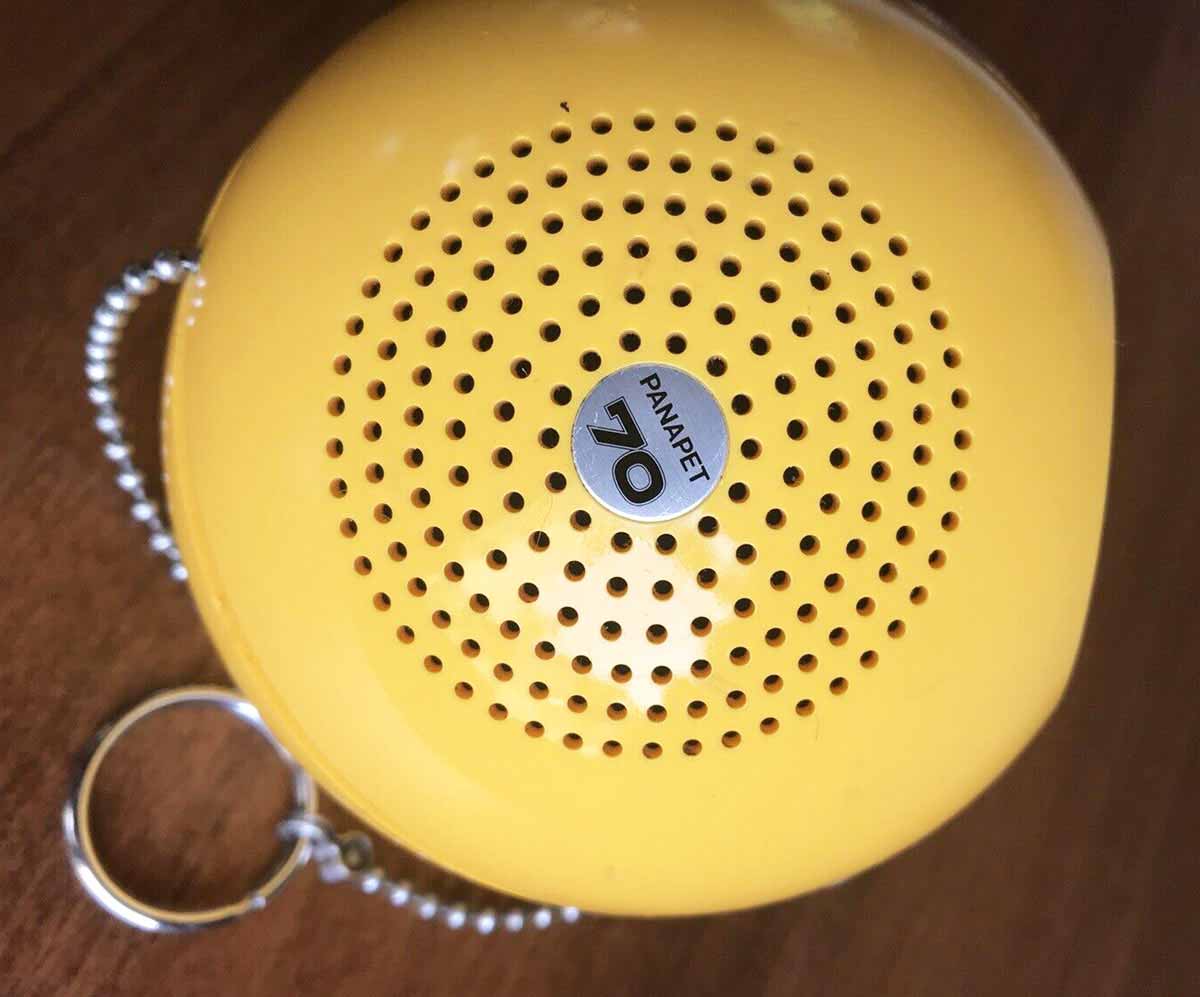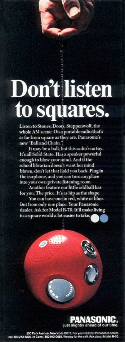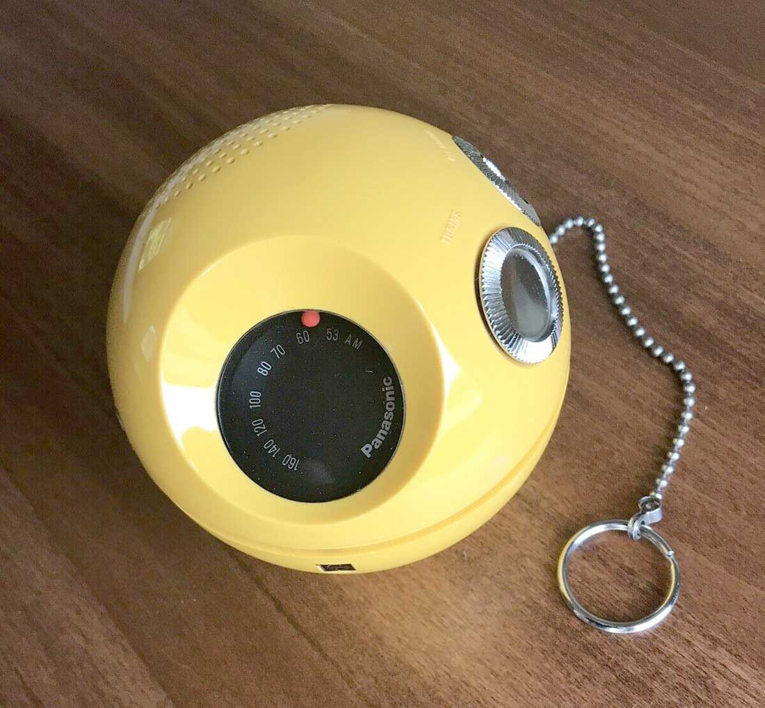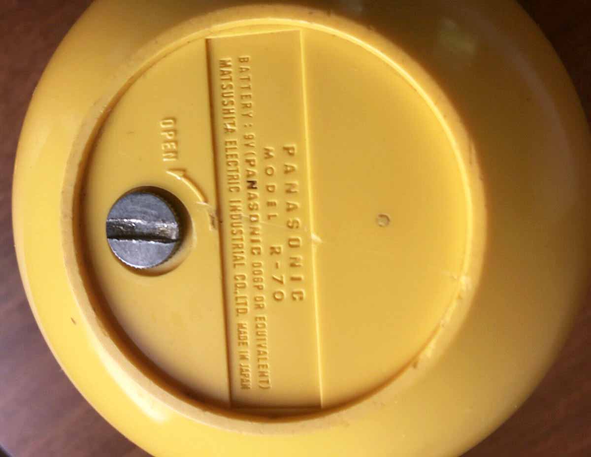 Портативный сувенирный радиоприёмник "Panasonic R-70" выпускался с 1969 года Японской компанией "Panasonic Matsushita". Супергетеродин. Шесть транзисторов. Диапазон MW - 525...1605 кГц. ПЧ - 455 кГц. АРУ. Питание - 9 вольт. Максимальная выходная мощность - 250 мВт. Диапазон воспроизводимых частот - 300...4000 Гц. Громкоговоритель диаметром 6 см. Диаметр шара - 110 мм. Масса с батареей 400 грамм.