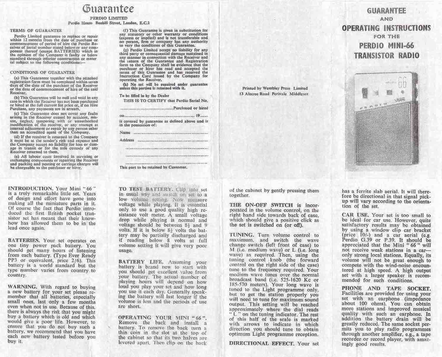 PR33" (Мini 66) выпускался с 1962 года компанией Perdio Electronics Ltd,