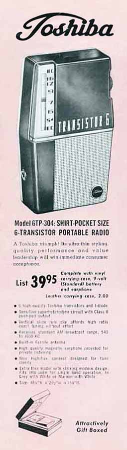 Тошиба из-за формы футляра. Супергетеродин на 6-ти транзисторах.