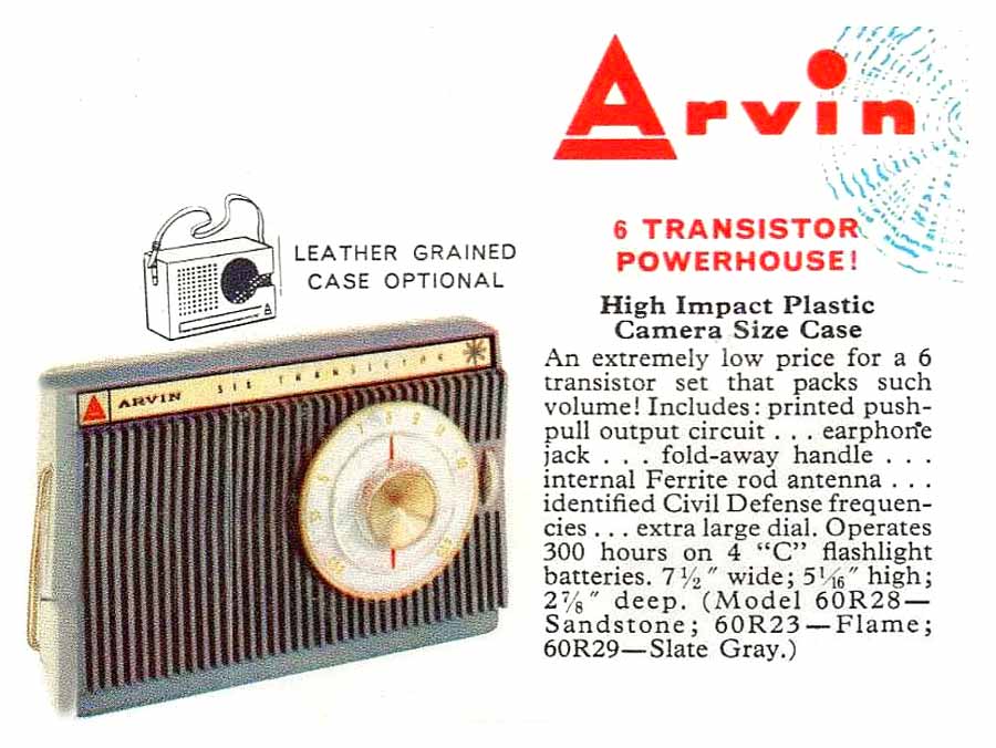и "Arvin-60R29" цвет "Сланцево-серый". Супергетеродин на 6-ти транзисторах.