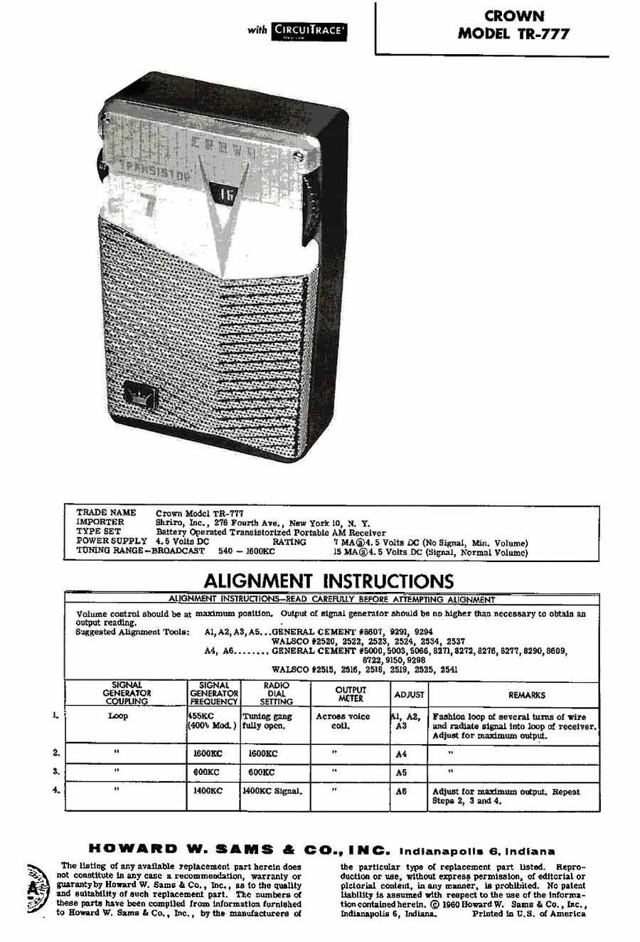 (TR-777) выпускался с 1959 года японской компанией "Asahi Radio" (Crown).
