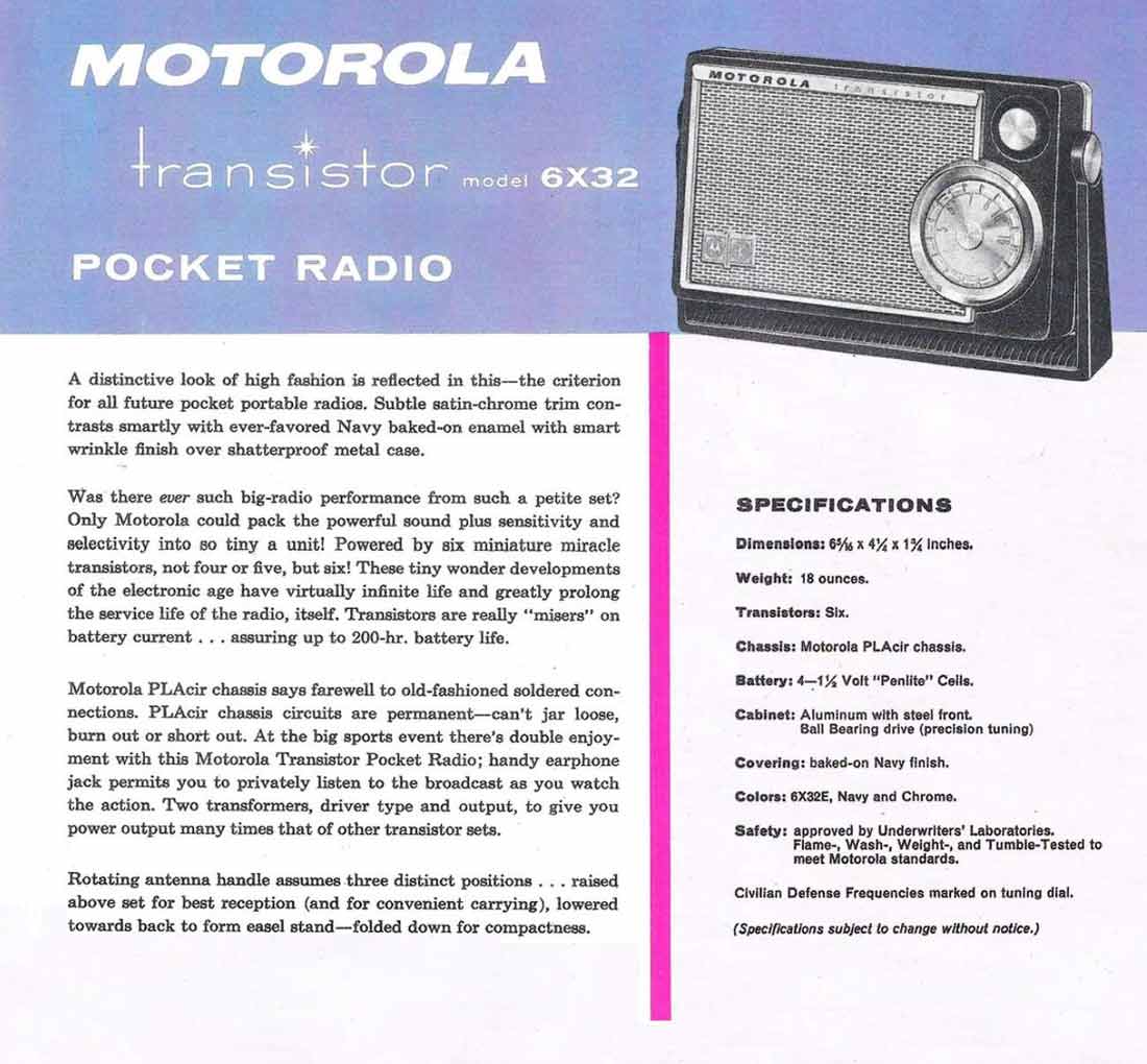 6X32" выпускался с 1958 года компанией "Motorola", США. Аналог модели "Motorola