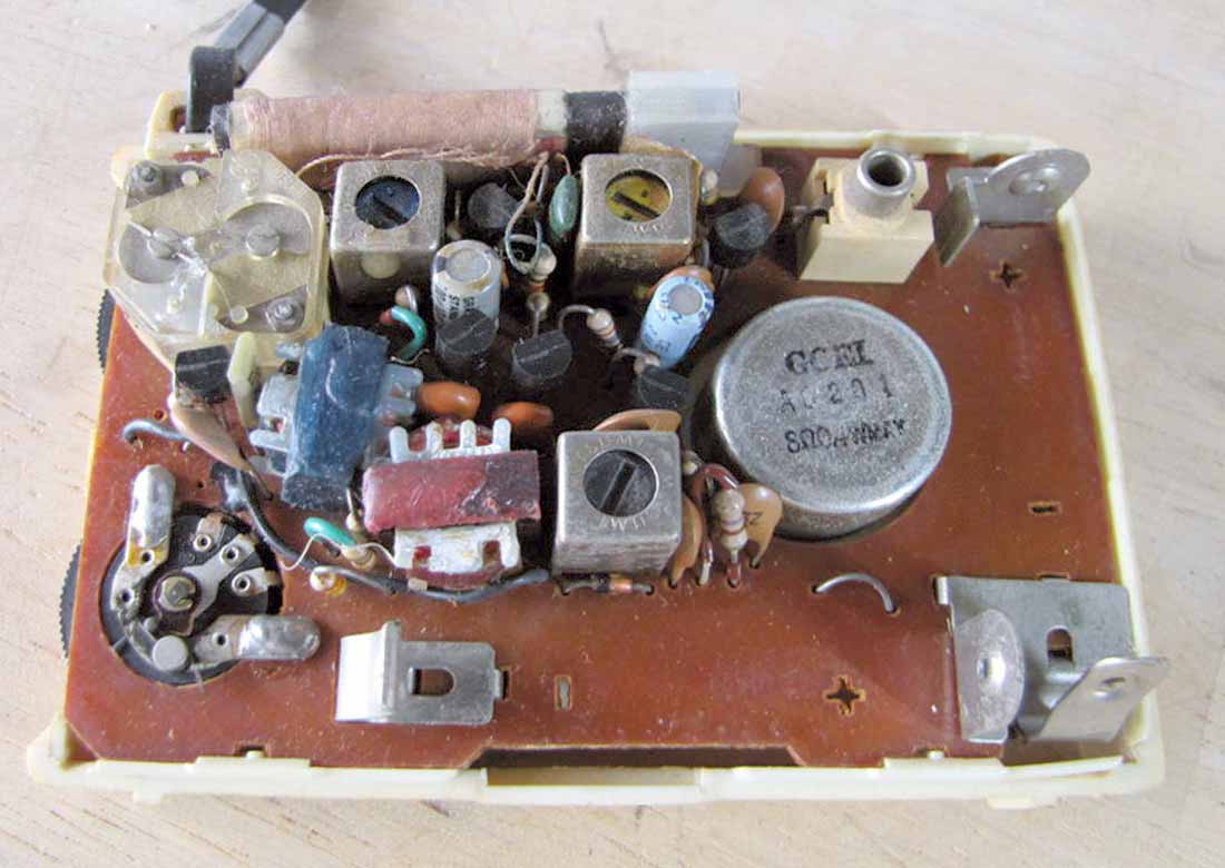 6 транзисторов. Диапазон 535...1620 кГц. ПЧ 455 кГц. АРУ. Диаметр громкоговорителя