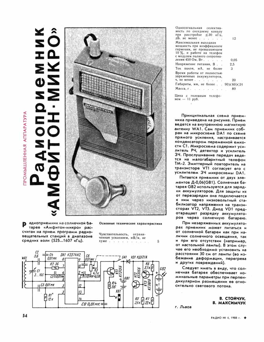 приёмника "Амфитон-Микро" для сайта предоставил Николай Галак.